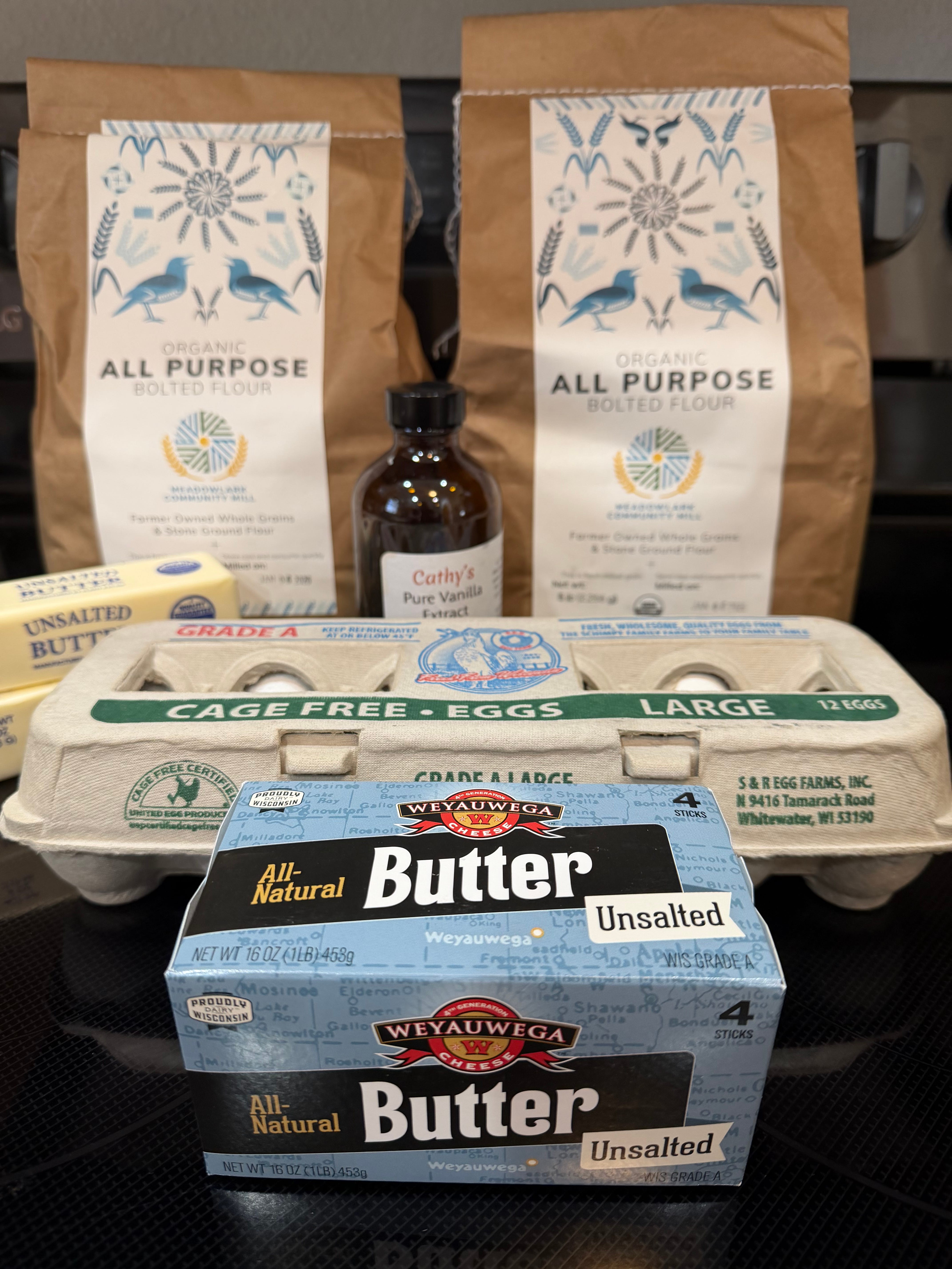 As you may already know, I use ingredients sourced close to home whenever possible. In fact, 57% of the ingredient cost for the Snickerdoodles I baked this week came from Wisconsin producers: Meadowlark Community Mill flour from Ridgeway, rich Weyauwega butter from central Wisconsin, Cathy’s Pure Vanilla Extract handcrafted just north of Madison, and S&R cage-free eggs from Whitewater.